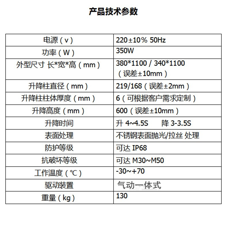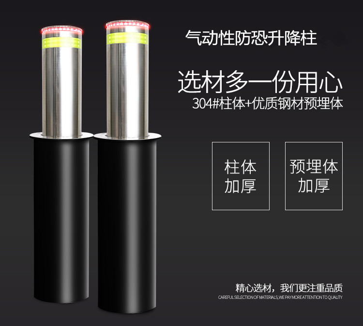 氣動式全自動升降柱是被廣泛應用的全自動護柱系列產品,適用于開放性較強、系統護柱數量較多、升降速度和運行頻率較高的項目應用。系統采用空氣為動力供給,符合節能環保趨勢,具有統一控制、動力及控制單元集中、維護方便、高響應速度、避免強電施工、安全性高等特點。大型項目集群式應用還可以分攤動力及控制系統成本,極大程度的控制項目實施預算。